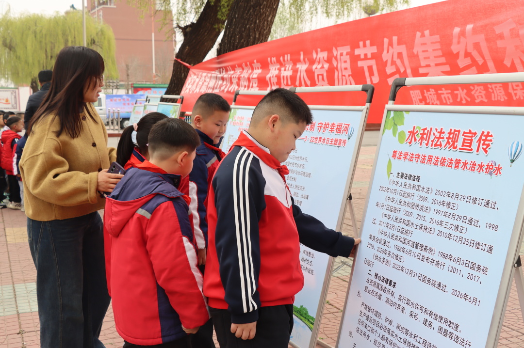 随后,宣传队伍来到老城街道中心小学,组织开展“世界水日”暨“中国水周”主题教育活动。工作人员借助展板、图片等生动的资料,向学生们讲解了“世界水日”的由来、目前我国及世界面临的水资源匮乏现状等知识,激发了学生们的节水护水意识。此外,同学们还在横幅上郑重签名,表达自己参与节水护水行动的决心。课后开展的“世界水日・中国水周”主题书法绘画创作大赛活动,学生们纷纷用手中的画笔呼吁大家节约用水,珍惜保护水资源。